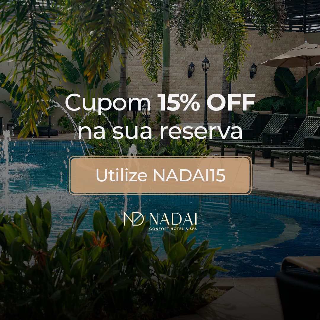 Pratos autorais, cafés especiais e drinks exclusivos para criar memórias cheias de sabor. Desde o check-in, cada detalhe foi pensado para transformar sua estadia em um momento único. Um convite acolhedor para se sentir imerso na cultura de Foz por meio de criações locais. Há 45 anos, o Nadai transforma estadias em experiências únicas. Um refúgio urbano que une arte, gastronomia e bem-estar em Foz do Iguaçu. Somos um espaço de memórias, encontros e transformações. Desde os primeiros anos até hoje, a nossa essência permaneceu a mesma: acolher com carinho. Que irá permanecer por novas gerações! Ambientes pensados para reconectar corpo e mente. Práticas conscientes que cuidam do planeta. Acolhimento que transforma estadias em memórias. Arte, gastronomia e experiências de conexão com a cultura local e a natureza. Descubra experiências imperdíveis em Foz do Iguaçu, Argentina, Paraguai e aproveite sua estadia ao máximo. Fale conosco!